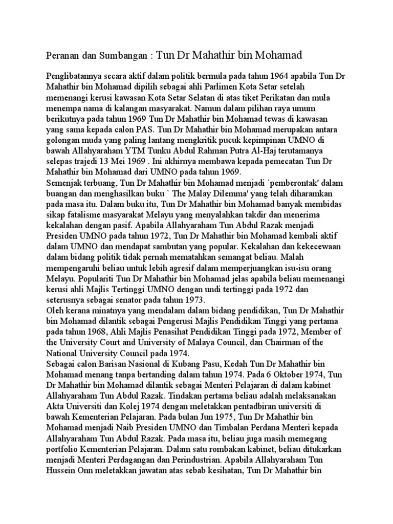Assignment Sejarah Sjh3163 Peranan Usaha Dan Sumbangan Tun Dr Mahat
