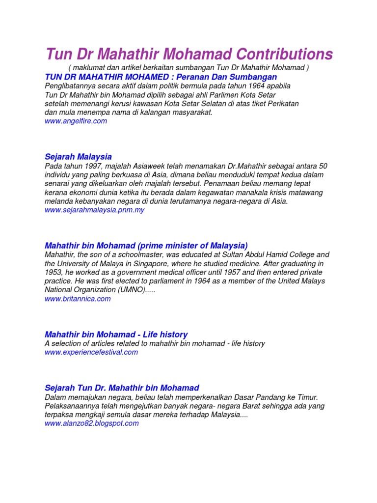 Tun Dr Mahathir Mohamed Usaha Dan Idea Beliau Dalam Menjadikan Malaysia Negara Maju Membalik Buku Halaman 1 16 Anyflip